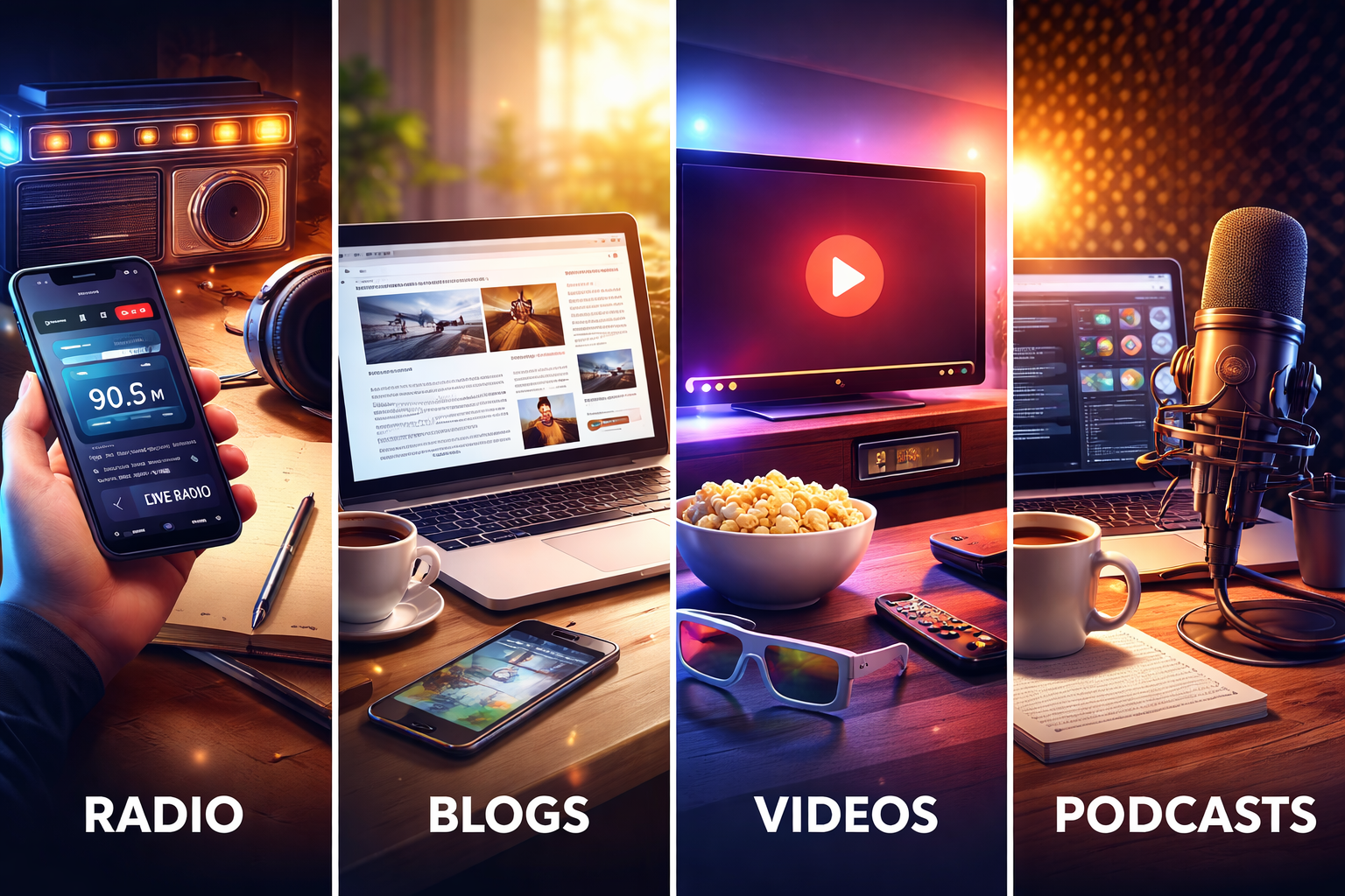 Our vision is to simplify how people consume media while empowering creators and broadcasters with greater reach, flexibility, and control. Whether you’re tuning into live radio, catching up on insightful podcasts, exploring thought-provoking blogs, or watching on-demand video content, Rydio offers a polished, reliable, and immersive environment designed for quality and accessibility.